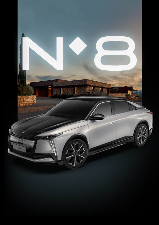 à partir de 50.098 € (i) Prix de vente TVAC pour l'achat d'une nouvelle DS N°8 PALLAS FWD sans options. Offre réservée aux particuliers, valable du 01/12/2025 au 31/12/2025, dans le réseau DS Automobiles luxembourgeois.